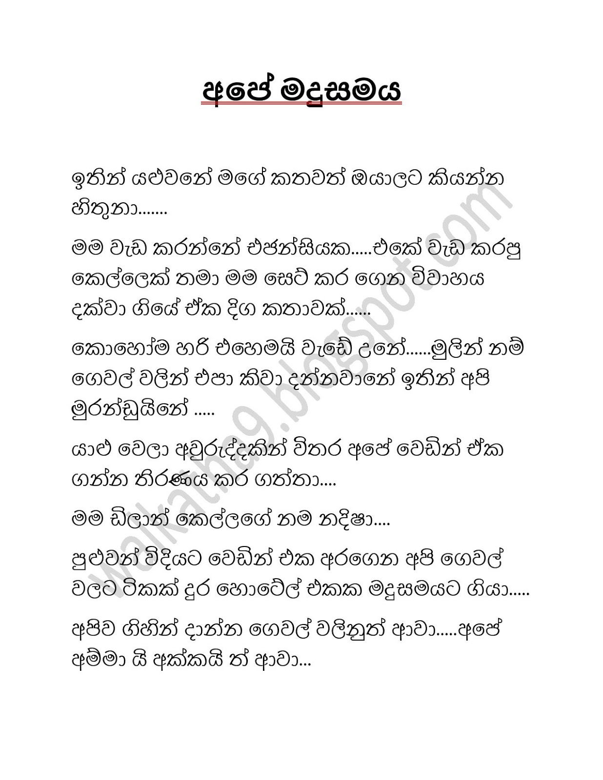 අපේ මදුසමය එක​